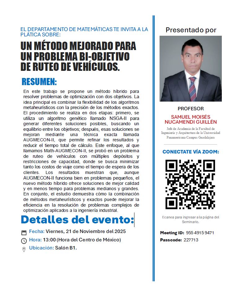 | 21/11/2025 | UN MÉTODO MEJORADO PARA UN PROBLEMA BI-OBJETIVO DE RUTEO DE VEHÍCULOS. |