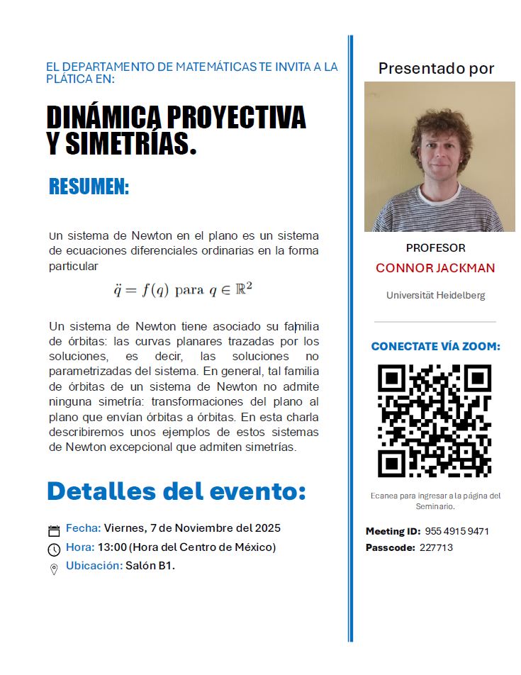 | 07/11/2025 | DINÁMICA PROYECTIVA Y SIMETRÍAS. |