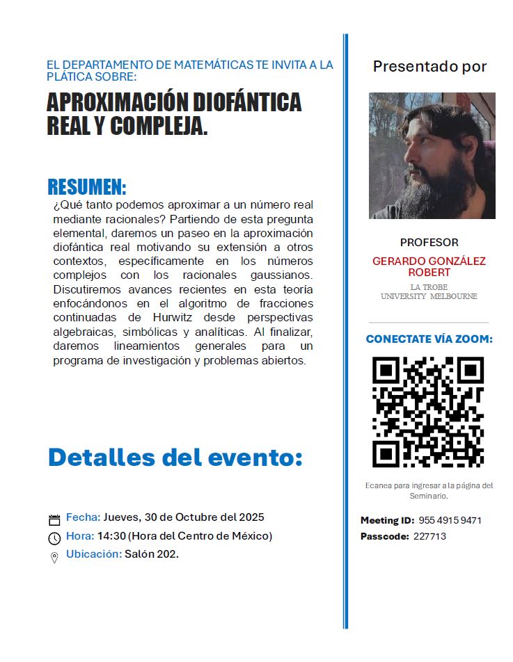 | 30/10/2025 | APROXIMACIÓN DIOFÁNTICA REAL Y COMPLEJA. |