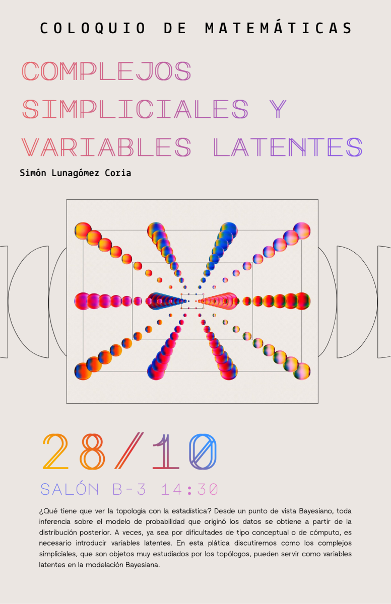 ¿Qué tiene que ver la topología con la estadística? Desde un punto de vista Bayesiano, toda inferencia sobre el modelo de probabilidad que originó los datos se obtiene a partir de la distribución posterior. A veces, ya sea por dificultades de tipo conceptual o de cómputo, es necesario introducir variables latentes. En esta plática discutiremos como los complejos simpliciales, que son objetos muy estudiados por los topólogos, pueden servir como variables latentes en la modelación Bayesiana.